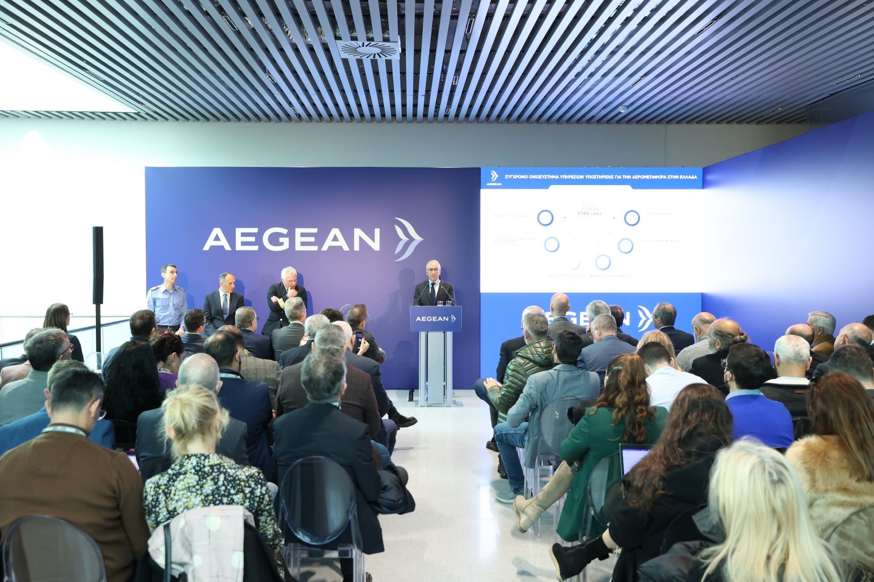 Ο Πρόεδρος της AEGEAN, Ευτύχιος Βασιλάκης παρουσίασε σήμερα μια ακόμη νέα επένδυση της αεροπορικής εταιρείας, συνολικού ύψους 140 εκατομμυρίων ευρώ, η οποία θα δημιουργήσει 1100 συνολικά νέες θέσεις εργασίας. Η επένδυση αφορά τη δημιουργία ενός σύγχρονου Κέντρου Υπηρεσιών Συντήρησης Πτητικών Μέσων και του πρώτου Κέντρου Προσομοιωτών Πτήσεων και Εκπαίδευσης Πληρωμάτων στη χώρα, το οποίο θα δημιουργηθεί στις νέες εγκαταστάσεις της τεχνικής βάσης της AEGEAN στο αεροδρόμιο Ελευθέριος Βενιζέλος.