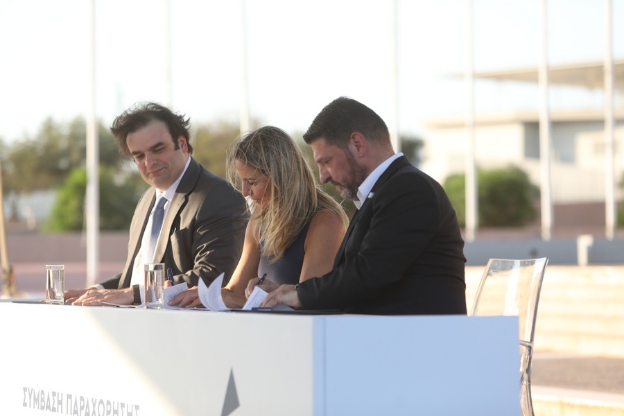 Στην υπογραφή της σύμβασης παραχώρησης του Κλειστού Ολυμπιακού Γηπέδου Φαλήρου (Tae Kwon Do) προχώρησαν σήμερα, Τρίτη 15 Ιουλίου 2025, η Διευθύνουσα Σύμβουλος της Εταιρείας Ακινήτων Δημοσίου (ΕΤΑΔ), κυρία Ηρώ Χατζηγεωργίου και ο Περιφερειάρχης Αττικής, κ. Νίκος Χαρδαλιάς, παρουσία του Υπουργού Εθνικής Οικονομίας και Οικονομικών, κ. Κυριάκου Πιερρακάκη.