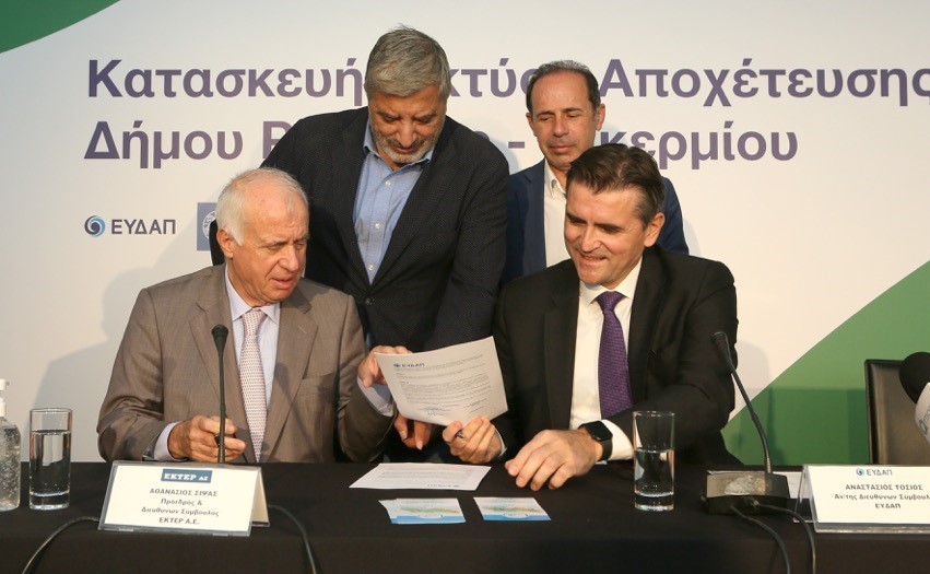 Υπεγράφη σήμερα, Τετάρτη 20 Οκτωβρίου, στο Πικέρμι, η σύμβαση που επισημοποιεί την έναρξη των έργων κατασκευής αποχετευτικού δικτύου για τη Δημοτική Ενότητα Πικερμίου, από τον Αναπληρωτή Διευθύνοντα Σύμβουλο της ΕΥΔΑΠ, κ. Αναστάσιο Τόσιο, και τον Διευθύνοντα Σύμβουλο της αναδόχου κατασκευαστικής εταιρείας «ΕΚΤΕΡ ΑΕ», κ. Αθανάσιο Σίψα, παρουσία του Δημάρχου Ραφήνας –Πικερμίου, κ. Ευάγγελου Μπουρνούς. Την εκδήλωση τίμησαν με την παρουσία τους ο Περιφερειάρχης Αττικής, κ. Γιώργος Πατούλης και ο Γενικός Γραμματέας Διαχείρισης Αποβλήτων του Υπουργείου Ενέργειας και Περιβάλλοντος, κ. Μανώλης Γραφάκος.