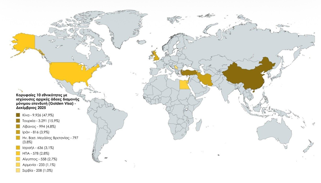 –Οι Ασιάτες εξακολουθούν να κυριαρχούν με τους επενδυτές από την Κίνα στο τέλος Δεκεμβρίου του 2025 να έχουν κοντά στο ήμισυ της αγοράς. Με βάση τις κορυφαίες 10 εθνικότητες με ισχύουσες αρχικές άδειες διαμονής μόνιμου επενδυτή στην Κίνα αντιστοιχούν οι 9.926 ή αλλιώς το 47,9% με την αγορά τώρα να δηλώνει ότι οι Κινέζοι επιστρέφουν σταδιακά και το ενδιαφέρον έχει αυξηθεί ειδικά τους τελευταίους 3-4 μήνες.
