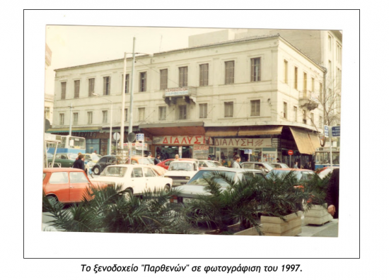 Στα τέλη του περασμένου αιώνα, τη δεκαετία του ’90 τη θέση του ξενοδοχείου “Παρθενών” πήρε μεγάλο εμπορικό κέντρο με την επωνυμία “Το Ρολόι” (ανέγερση που διήρκεσε από το 1991 έως το 1994) από τον όμιλο Χαραγκιώνη.