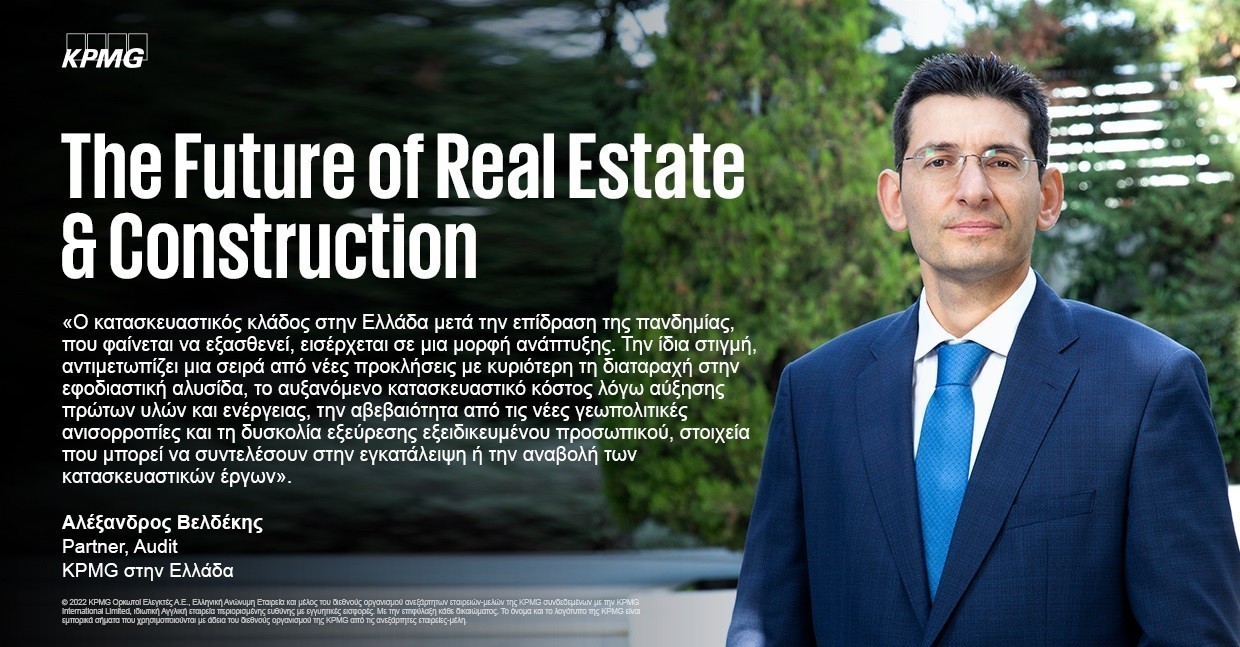 Η μελέτη “The Future of Real Estate & Construction” που πραγματοποιήθηκε από την KPMG στην Ελλάδα, παρουσιάζει τις επιδόσεις του κλάδου παγκοσμίως και τις σχετικές μεταβολές του εξαιτίας σημαντικών γεγονότων της τελευταίας εικοσαετίας, όπως η ευρωπαϊκή νομισματική ένωση, η παγκόσμια οικονομική και μετέπειτα Ευρωπαϊκή κρίση, καταλήγοντας στην πανδημία και τις άνευ προηγουμένου επιπτώσεις της.