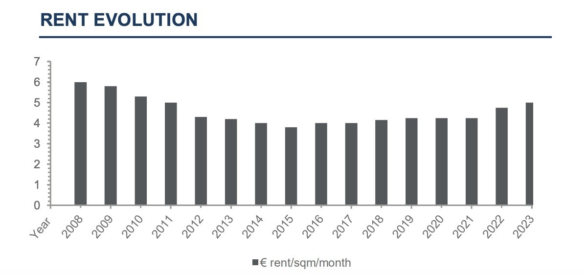 «Η άνοδος των ενοικίων τον τελευταίο χρόνο έρχεται ως αποτέλεσμα της ανισορροπίας στο ισοζύγιο προσφοράς/ ζήτησης και της αύξησης του κατασκευαστικού κόστους», αναφέρει στην τελευταία της ανάλυση για την πορεία της αγοράς logistics η γνωστή εταιρεία συμβούλων ακινήτων Cushman & Wakefield Proprius η οποία κάνει λόγο και για αυξημένο επενδυτικό όγκο στη διάρκεια του γ’ τριμήνου του 2023, στα πέριξ των 50 εκατ. ευρώ.