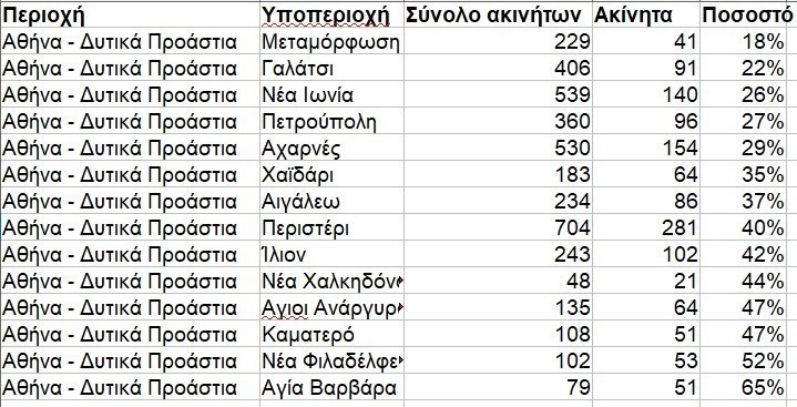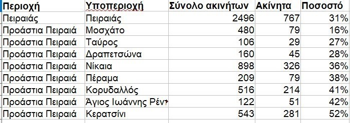 Ενδεικτικά στο Κερατσίνι από ένα σύνολο 543 θεωρητικά διαθέσιμων ακινήτων επιλέξιμα είναι 281, ενώ στη Νέα Φιλαδέλφεια επί συνόλου 102 ακινήτων είναι επιλέξιμα τα 53%.
