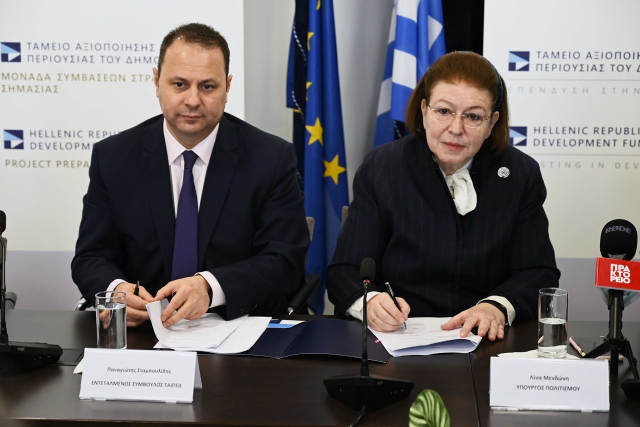 Τη σύμβαση για την ωρίμανση και τη διενέργεια της διαγωνιστικής διαδικασίας για την αποκατάσταση των χώρων και των κτηρίων εστίασης και φιλοξενίας εντός του π. βασιλικού κτήματος στο Τατόι, υπέγραψαν σήμερα Τρίτη, 27 Φεβρουαρίου 2024, η Υπουργός Πολιτισμού Λίνα Μενδώνη και ο Εντεταλμένος Σύμβουλος και Επικεφαλής της Μονάδας Συμβάσεων Στρατηγικής Σημασίας του ΤΑΙΠΕΔ Παναγιώτης Σταμπουλίδης, παρουσία του Διευθύνοντος Συμβούλου του ΤΑΙΠΕΔ, Δημήτρη Πολίτη και του Διευθύνοντος Συμβούλου και Εκτελεστικού Μέλους ΔΣ Υπερταμείου (ΕΕΣΥΠ), Γρηγόρη Δ. Δημητριάδη.