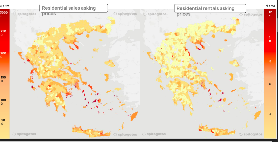 Σε επίπεδο αξιών, οι μεγαλύτερες αυξήσεις στη διάρκεια των τελευταίων μηνών έχουν καταγραφεί στο κέντρο του Πειραιά, τα βόρεια της Αθήνας και τη Θεσσαλονίκη, ενώ στην ενοικίαση, η μεγαλύτερη αύξηση παρατηρείται στα δύο μεγάλα αστικά κέντρα της χώρας, Αθήνα και Θεσσαλονίκη. Σύμφωνα με τα στοιχεία, οι τιμές οικιστικών ακινήτων αυξήθηκαν κατά 6,5% το γ’ τρίμηνο του έτους.