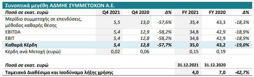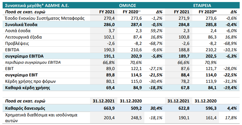 Η εταιρεία «ΑΝΕΞΑΡΤΗΤΟΣ ΔΙΑΧΕΙΡΙΣΤΗΣ ΜΕΤΑΦΟΡΑΣ ΗΛΕΚΤΡΙΚΗΣ ΕΝΕΡΓΕΙΑΣ Α.Ε. (ΑΔΜΗΕ Α.Ε.)» εφεξής «η Συγγενής» ανακοίνωσε επίσης ελεγμένα οικονομικά αποτελέσματα σύμφωνα με τα Διεθνή Πρότυπα Χρηματοοικονομικής Αναφοράς (Δ.Π.Χ.Α.) για τη χρήση που έληξε στις 31 Δεκεμβρίου 2021 τα οποία εμφανίζονται στον παρακάτω πίνακα:*