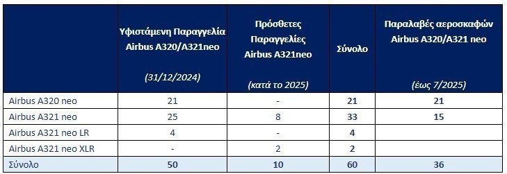 Με την προσθήκη των 2 (δύο) Α321neo XLR αεροσκαφών, που παραλαμβάνονται άμεσα τον Δεκέμβριο του 2025 και τον Ιανουάριο του 2026 αντίστοιχα, στην υφιστάμενη παραγγελία των 4 (τεσσάρων) A321neo LR που ανακοινώθηκε τον Απρίλιο του 2024 και παραλαμβάνονται το 2027 και το 2028, μεγαλώνει ο αριθμός αλλά και οι δυνατότητες του στόλου «ειδικού τύπου» της AEGEAN, με αναβαθμισμένο επίπεδο άνεσης και διαφοροποιημένη ταξιδιωτική εμπειρία, που δημιουργήθηκε για να εξυπηρετήσει προορισμούς εκτός ΕΕ και με απόσταση μεγαλύτερη από 4 ώρες πτήσης.