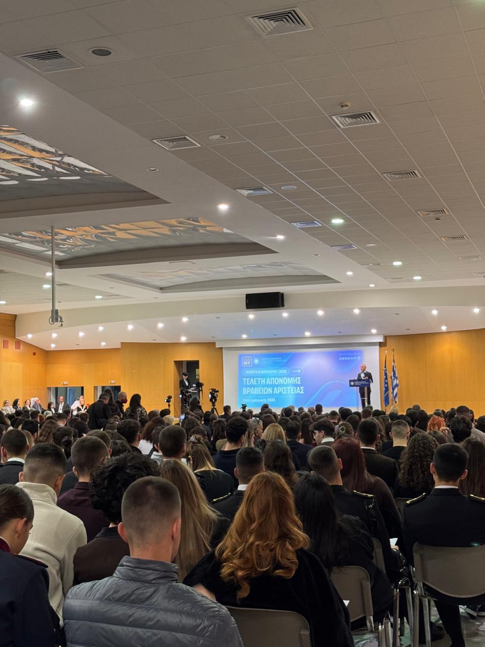 Τα βραβεία για τους περίπου 2.300 δικαιούχους φοιτητές ανακοινώθηκαν από τον CEO της AEGEAN, κ. Δημήτρη Γερογιάννη, παρουσία του Υπουργού, κ. Κυριάκου Πιερρακάκη, και της Προέδρου του ΙΚΥ κ. Βάσως Κιντή, αναδεικνύοντας τη διαχρονική δέσμευση της αεροπορικής να επιβραβεύει την αριστεία.