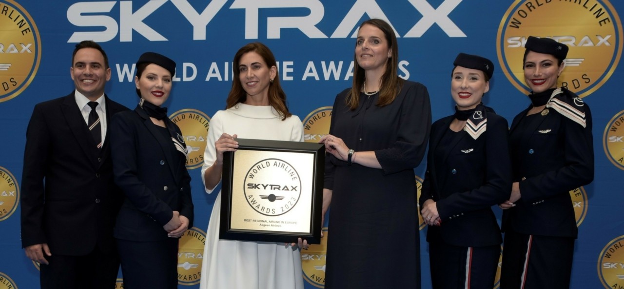Για 12η συνεχή χρονιά και 13η συνολικά, η AEGEAN ανακηρύσσεται πρώτη στις προτιμήσεις των επιβατών και κατακτά τον τίτλο της «Καλύτερης Περιφερειακής Αεροπορικής Εταιρείας στην Ευρώπη» στα Skytrax World Airline Awards 2023, που ανακοινώθηκαν φέτος σε ειδική εκδήλωση στο πλαίσιο του εντυπωσιακού Paris Air Show. Ταυτόχρονα, η AEGEAN βρίσκεται μεταξύ των καλύτερων αεροπορικών εταιρειών για το πλήρωμα καμπίνας της, κατακτώντας την 4η θέση στην κατάταξη για το «Καλύτερο Πλήρωμα Καμπίνας στην Ευρώπη».