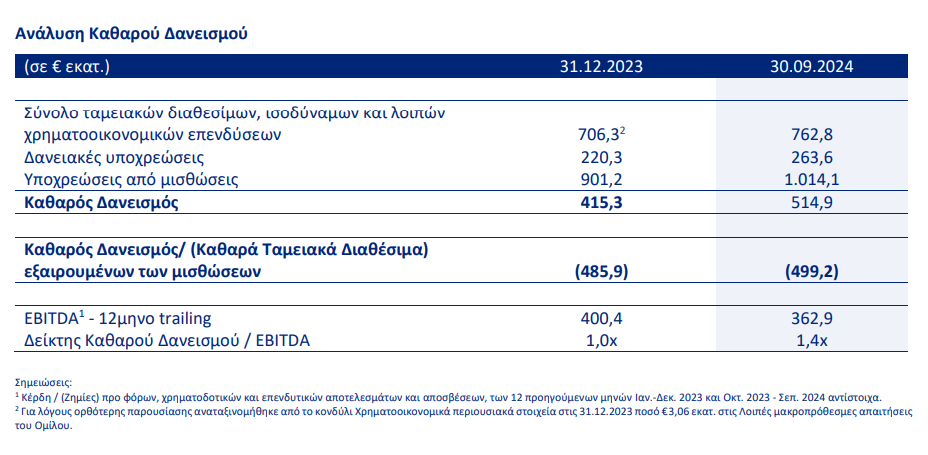 Τα ταμειακά διαθέσιμα, ισοδύναμα και λοιπές χρηματοοικονομικές επενδύσεις διαμορφώθηκαν σε €762,8 εκατ. στις