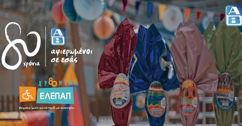 Μέσα από ένα ευφάνταστο τηλεοπτικό σποτ και τη «δημοπρασία αβγών» ως δημιουργικό εύρημα, μικρά παιδιά πρωταγωνιστούν και λαμβάνουν μέρος σε μια «δημοπρασία αγάπης» για τα Γενναία Παιδιά της ΕΛΕΠΑΠ. Με αυτόν τον τρόπο, φέτος, η ΑΒ Βασιλόπουλος αφιερώνει τα Πασχαλινά της Αβγά στους μικρούς μας φίλους με κινητικές αναπηρίες και μας καλεί να στηρίξουμε μαζί τα μικρά ή μεγάλα «βήματα ζωής» τους.