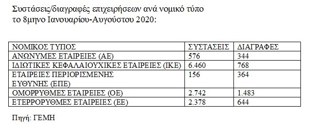 –συστάθηκαν 22.962 νέες επιχειρήσεις όλων των νομικών τύπων, λιγότερες κατά 2.229
