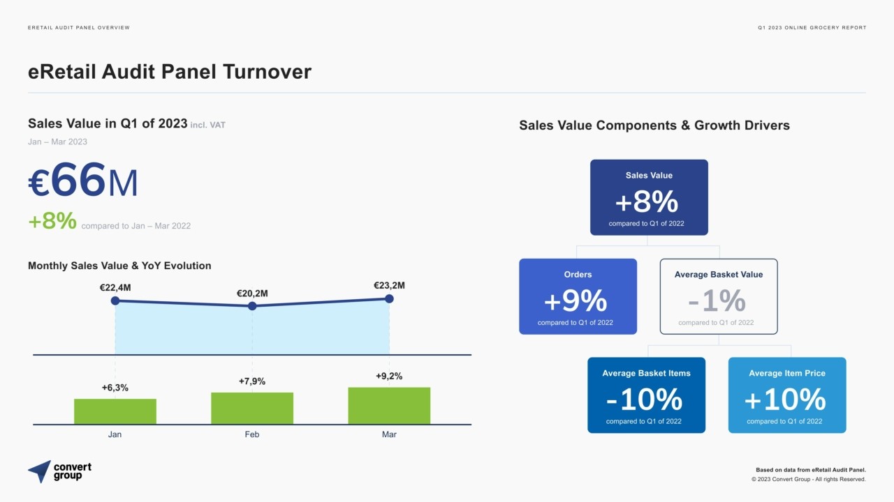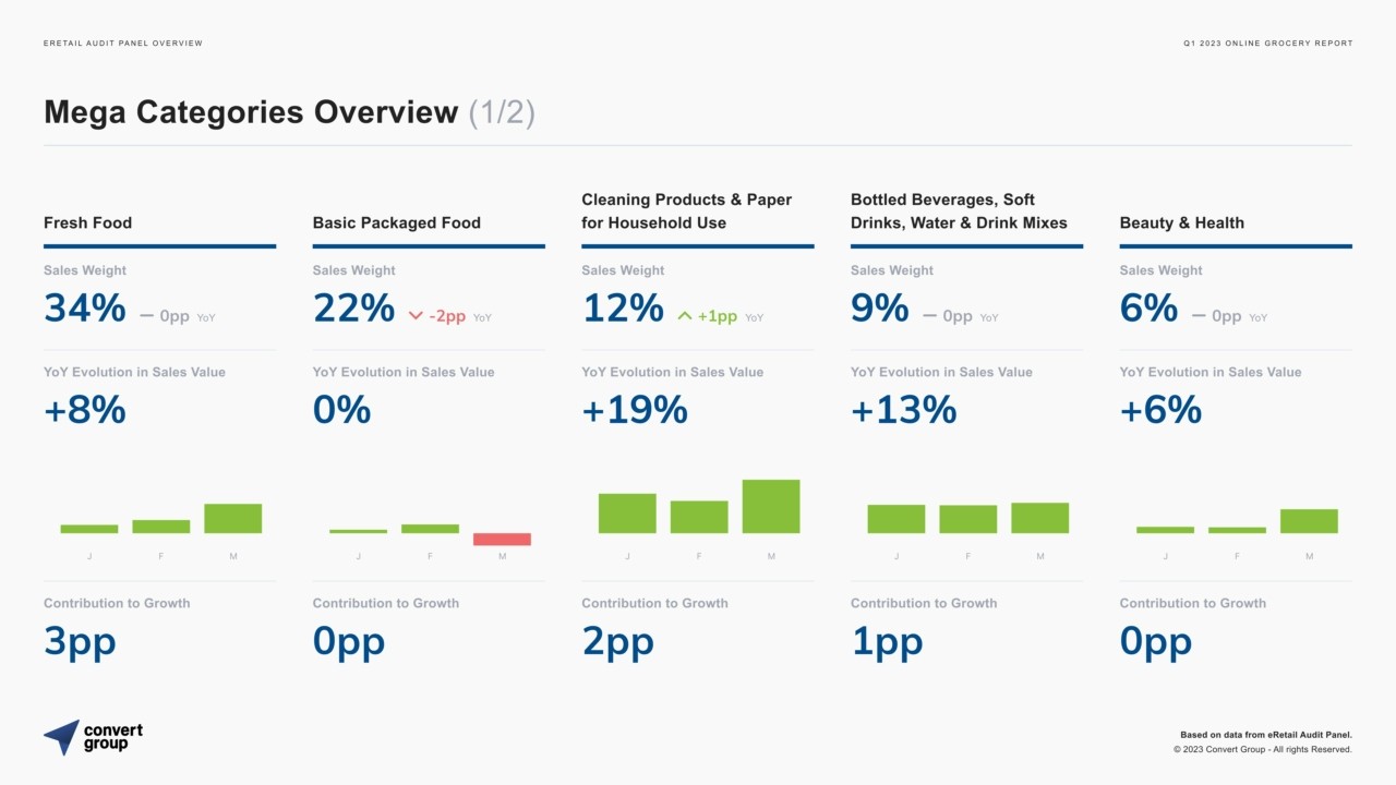 Τα στοιχεία αυτά και πολλά ακόμη πολύτιμα ευρήματα περιλαμβάνονται στο τριμηνιαίο report που δημοσίευσε σήμερα η Convert Group, η ηγέτιδα εταιρεία στον τομέα των data & analytics για το Ηλ. Εμπόριο προϊόντων, μέσω της πλατφόρμας της eRetail Audit, η οποία δημιουργεί αξία παγκοσμίως σε εκατοντάδες λιανέμπορους και προμηθευτές.