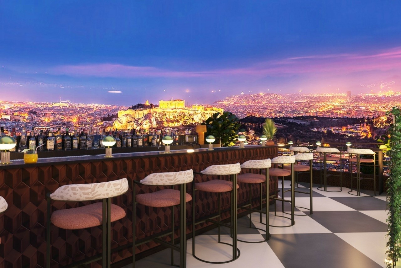 Το πιο ελκυστικό κομμάτι του κτηρίου θα είναι το εντυπωσιακό roof top bar – εστιατόριο, με θέα την Ακρόπολη, το οποίο υπόσχεται να γίνει ένα από τα πιο σύγχρονα hotspots της Αθήνας. Οι επισκέπτες θα έχουν την ευκαιρία να γευτούν ένα συναρπαστικό menu Nikkei, συνδυάζοντας αρμονικά τις γεύσεις της ιαπωνικής και περουβιανής κουζίνα, μαζί με μια εντυπωσιακή επιλογή δημιουργιών mixology και εκλεκτών κρασιών. Το roof top απλώνεται σε τρία επίπεδα και περιλαμβάνει το rooftop raw bar, όπου προσφέρει ιαπωνικό σούσι και περουβιανό ceviche, το εσωτερικό bar και κουζίνα, που περιβάλλεται από ένα ζεστό και άνετο lounge χώρο, καθώς και τον prive χώρο με υπέροχη θέα. Ζωντανή μουσική και επιλεγμένα DJ set δημιουργούν το ιδανικό υπόβαθρο για αξέχαστες βραδιές στο κέντρο της Αθήνας.
