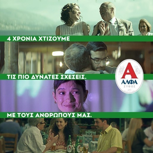 Με κοινό παρονομαστή την αξία και τη δύναμη των αληθινών ανθρώπινων σχέσεων, που ήρθαν στο προσκήνιο μέσα από τις κινηματογραφικές ιστορίες και αναδείχθηκαν όλα αυτά τα χρόνια, η ΑΛΦΑ κατάφερε να κερδίσει την καρδιά και το μυαλό των καταναλωτών. Ο ιδιαίτερα συγκινητικός τρόπος που παρουσιάζονται οι ιστορίες και παράλληλα τα εμβληματικά ελληνικά τραγούδια που έχουν «ντύσει» τις καμπάνιες, θυμίζουν τις σταθερές μας αξίες και τις στιγμές που διαμορφώνουν τη ζωή μας. Όλα αυτά είχαν ως αποτέλεσμα, να μετατρέψουν μια οικεία μπύρα με προσιτή τιμή, σε μία μάρκα που έκανε όλους τους Έλληνες να νιώθουν περήφανοι που κρατούν στο χέρι μια ΑΛΦΑ.