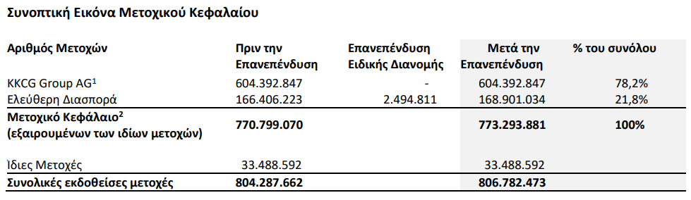 Ως αποτέλεσμα της επανεπένδυσης, τη Δευτέρα, 4 Μαΐου 2026, θα εκδοθούν 2.494.811 νέες κοινές μετοχές που θα τεθούν προς διαπραγμάτευση στην Κύρια Αγορά του Χρηματιστηρίου Αθηνών (Euronext Athens) και το υπόλοιπο της Ειδικής Διανομής θα καταβληθεί σε μετρητά στους δικαιούχους.