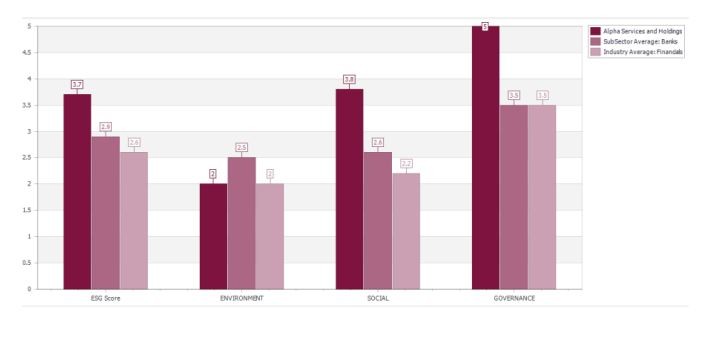 Σε ό,τι αφορά στο Περιβάλλον, η μητρική του Ομίλου Alpha Bank βρίσκεται κοντά στον μέσο όρο των υπόλοιπων ελληνικών και ξένων τραπεζών, γεγονός που αντανακλά τις σημαντικές της πρωτοβουλίες στην εφαρμογή βέλτιστων πρακτικών στη διαχείριση κλιματικών και περιβαλλοντικών κινδύνων.