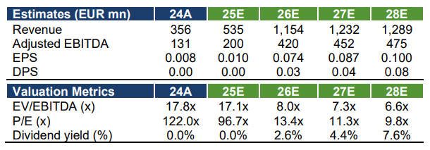 Σε επίπεδο κερδοφορίας, το περιθώριο EBITDA της Bally’s εκτιμάται ότι θα μειωθεί από 42,6% το 2025 σε 36,4% το 2026, με EBITDA 294 εκατ. ευρώ, ενώ το συνολικό EBITDA του ομίλου για το 2026 αναμένεται στα 420 εκατ. ευρώ, στο κάτω εύρος του guidance. Για τα έτη 2027 και 2028, το περιθώριο της Bally’s αναμένεται να ανακάμψει σε 36,8% και 37%, αντίστοιχα, με την αγορά να προσαρμόζεται στο νέο πλαίσιο φορολόγησης. Μεσοπρόθεσμα, το περιθώριο εκτιμάται ότι θα σταθεροποιηθεί στο περίπου 37%.