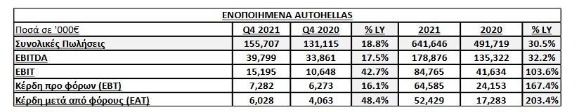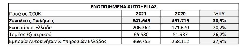 Τα οικονομικά της αποτελέσματα για το 2021 ανακοίνωσε την Πέμπτη η Autohellas, παρουσιάζοντας σημαντικές επιδόσεις τόσο σε επίπεδο ενοποιημένου κύκλου εργασιών Ομίλου, όσο και σε επίπεδο κερδοφορίας.