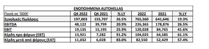 H Autohellas ανακοινώνει τα ετήσια οικονομικά αποτελέσματα για το 2022, καταγράφοντας για δεύτερη συνεχή χρονιά νέο ιστορικό υψηλό για τον Όμιλο τόσο σε επίπεδο ενοποιημένου κύκλου εργασιών, όσο και σε επίπεδο κερδοφορίας.