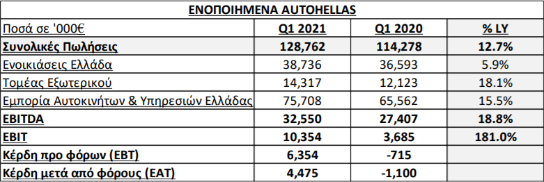 Αύξηση κατά 12,7% σε επίπεδο ενοποιημένου κύκλου εργασιών, ο οποίος ανήλθε σε 128,8 εκατ. ευρώ, έναντι 114,3 εκατ. ευρώ το 2020, παρά τους περιορισμούς στη διαπεριφερειακή και διεθνή μετακίνηση, ανακοίνωσε η Autohellas.
