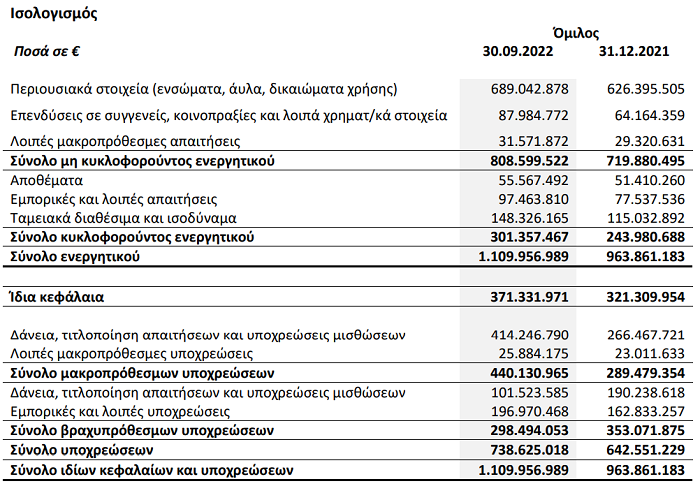 Το τρίτο τρίμηνο του έτους, το εποχικά ισχυρότερο για κάθε χρήση, ο Κύκλος Εργασιών παρουσίασε αύξηση 22,6% και διαμορφώθηκε στα €217,2εκ. έναντι €177,1εκ. το αντίστοιχο τρίμηνο του 2021. . Τα Λειτουργικά Κέρδη του τριμήνου (ΕΒΙΤ) ανήλθαν στα €55,9εκ. ενώ τα Κέρδη μετά από φόρους (ΕΑΤ) κατέγραψαν αύξηση 42,6% και διαμορφώθηκαν στα €42,1εκ.