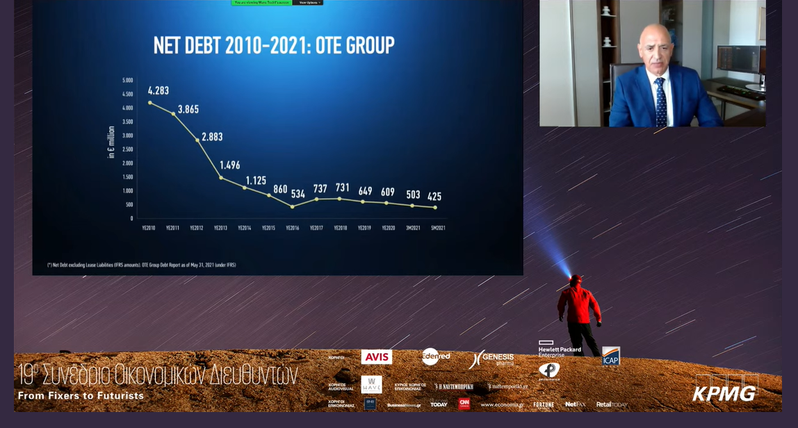 «Για να πάει μια εταιρεία στο μέλλον, χρειάζεται πάνω από όλα όραμα, αλλά και πόρους, να κάνει τις σωστές κινήσεις στον κατάλληλο χρόνο, και στελέχη έτοιμα να πάρουν αποφάσεις που εμπεριέχουν ρίσκο», είπε ο επικεφαλής Χρηματοοικονομικών Θεμάτων του Ομίλου ΟΤΕ, και στάθηκε σε τρία ορόσημα για την εταιρεία: τον ολικό μετασχηματισμό που ξεκίνησε το 2010, τον ψηφιακό μετασχηματισμό που ξεκίνησε το 2016, και τη δημιουργία νέων πηγών εσόδων.