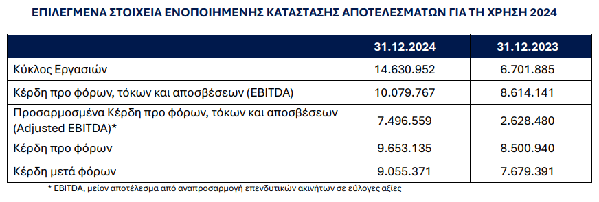 Σύμφωνα με τη συνοπτική ανακοίνωση της εισηγμένης για τα οικονομικά αποτελέσματα χρήσης 2024: