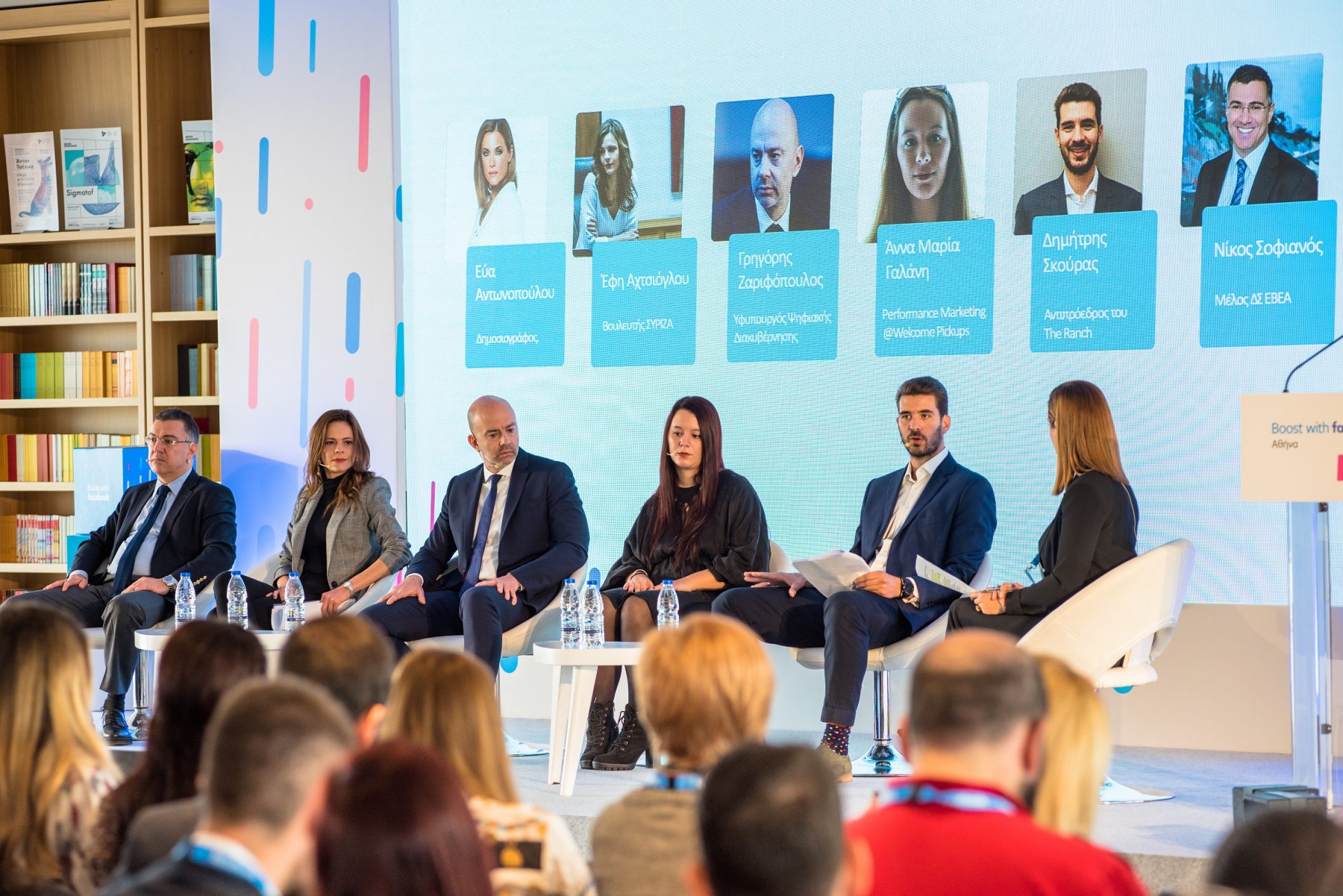 Την εκδήλωση συντόνισε η δημοσιογράφος Εύα Αντωνοπούλου. Η εκδήλωση Boost with Facebook τόνισε, επίσης, την επιτυχία των ελληνικών ΜΜΕ συμβάλλοντας σε ψηφιακές λύσεις σε τοπικό, εθνικό και διεθνές επίπεδο.