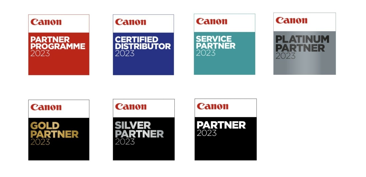 Όπως αναφέρεται στην ανακοίνωση μπορείτε να αναγνωρίσετε τους εξουσιοδοτημένους συνεργάτες της Canon με ένα από τα παρακάτω λογότυπα ανάλογα με το επίπεδο συνεργασίας και πιστοποίησης που διαθέτουν εφόσον είναι ακόμα σε ισχύ και αναφέρονται ταυτόχρονα στην σχετική επίσημη ιστοσελίδα της Canon.