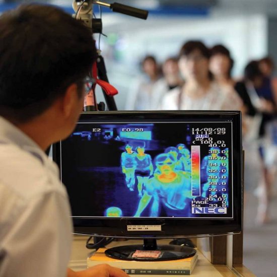 Εξαιτίας της προηγούμενης επιδημίας του SARS το 2003, το αεροδρόμιο της Σιγκαπούρης ήταν από τα πρώτα στον κόσμο που εγκατέστησαν θερμικές κάμερες για τον εντοπισμό των κρουσμάτων. Κατόπιν, η τακτική αυτή επεκτάθηκε σε ορισμένες περιοχές λόγω άλλων κρίσεων, όπως κατά την επιδημία του αιμορραγικού πυρετού Έμπολα στην υποσαχάρια Αφρική το 2014-2016 και κατόπιν το 2018 στη Λαϊκή Δημοκρατία του Κονγκό.