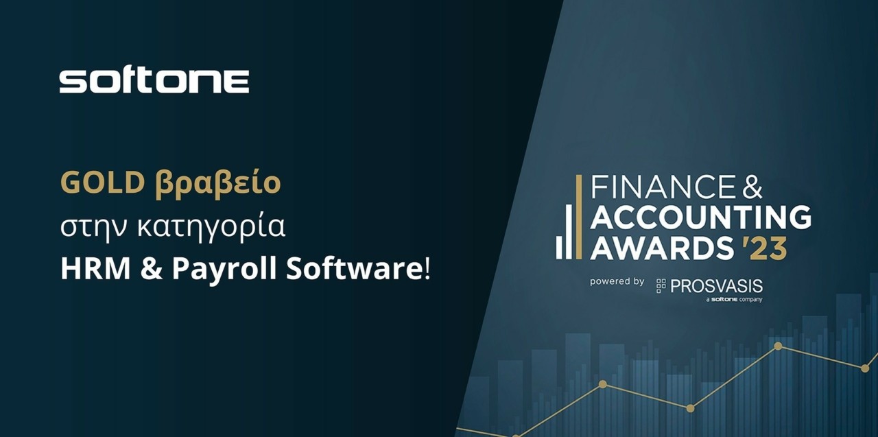 Μεταξύ των μεγάλων νικητών των βραβείων Finance & Accounting Awards 2023 powered by Prosvasis ήταν η SoftOne, η οποία απέσπασε το GOLD βραβείο στην κατηγορία “HRM & Payroll Software” για την υποψηφιότητα των εφαρμογών Soft1 HRMS και Soft1 Payroll.