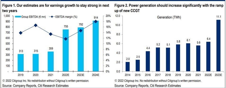Ειδικότερα στην ανάλυση της Citi αναφέρεται ότι η πράσινη ανάπτυξη θα μπει στο επίκεντρο από το 2023 και μετά, ενώ η εταιρεία εισέρχεται στην τελευταία φάση της θέσης σε λειτουργία της μονάδας CCGT ισχύος 826 MW (στο Ενεργειακό Κέντρο του Αγίου Νικολάου Βοιωτίας), διπλασιάζοντας τη θερμική της ισχύ μέχρι το 2023. Ωστόσο, η κατανομή κεφαλαίου εστιάζει προς την επέκταση έργων ηλιακής ενέργειας 1,4 GW, με pipeline έως 6GW.