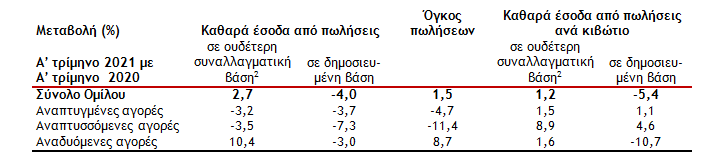 • Αναπτυγμένες αγορές: Η ανάπτυξη του μίγματος προϊόντων/τιμών διατηρήθηκε παρά τους συνεχιζόμενους περιορισμούς στο κανάλι κατανάλωσης εκτός σπιτιού.