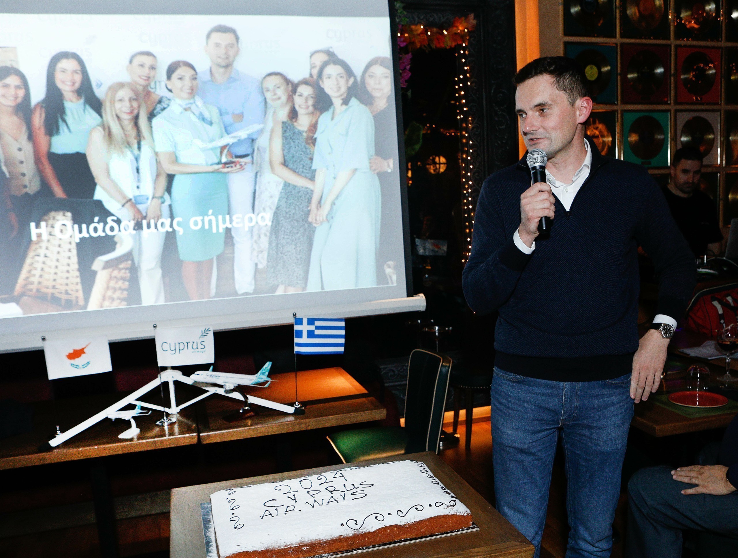 Ο κύριος Αλένκιν, κόβοντας την πίτα της εταιρείας, ευχαρίστησε τους συνεργάτες της εταιρείας για την μέχρι σήμερα συνεργασία και εξέφρασε την βεβαιότητα ότι η συνεργασία θα ενισχυθεί περαιτέρω προς όφελος όσων ταξιδεύουν για επαγγελματικούς ή ιδιωτικούς λόγους.