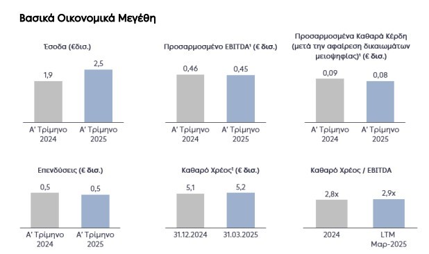 • Επιβεβαίωση των προοπτικών για το 2025 με εκτίμηση για προσαρμοσμένο EBITDA στα €2 δισ.