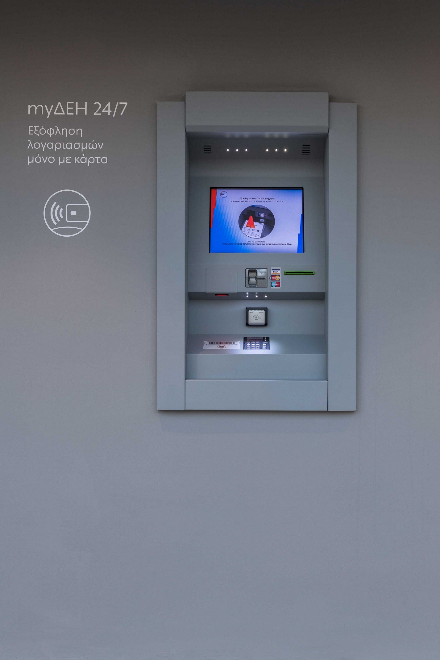 Οι πελάτες στο νέο κατάστημα της ΔΕΗ μπορούν να εξυπηρετηθούν όλο το 24ωρο για πληρωμές λογαριασμών μέσω του myΔΕΗ24 για πληρωμές λογαριασμών 24/7.