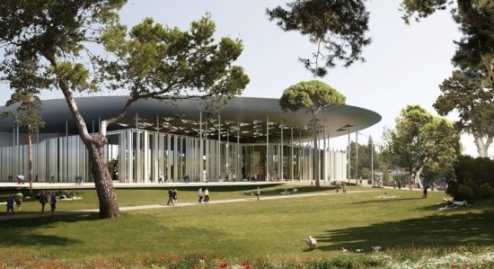 Τα περιβαλλοντικά και κατασκευαστικά πλεονεκτήματα της αρχιτεκτονικής πρότασης παρουσίασε ο κ. Μatthias Sauerbruch από την Sauerbruch Hutton Architects, τονίζοντας πως οι εκθεσιακοί χώροι και το συνεδριακό κέντρο θα ξεχωρίζουν με τις χαρακτηριστικές προεξέχουσες στέγες τους, που αιωρούνται σαν σύννεφα στο τοπίο.