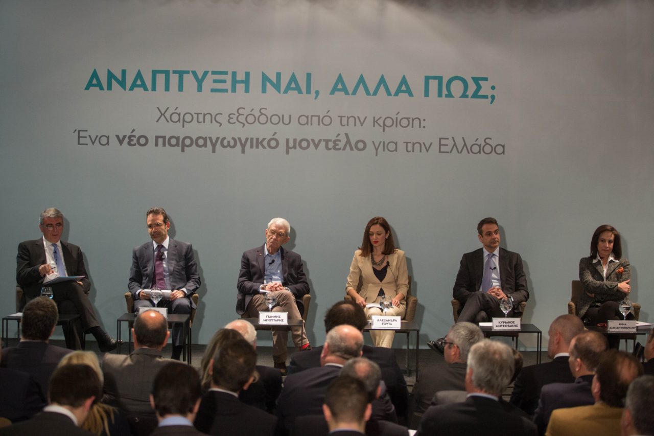 Στη συζήτηση για το βιβλίο και το νέο παραγωγικό μοντέλο της χώρας συμμετείχαν ο Πρόεδρος της Νέας Δημοκρατίας Κυριάκος Μητσοτάκης, ο Δήμαρχος Θεσσαλονίκης Γιάννης Μπουτάρης και η π.Υπουργός ‘Αννα Διαμαντοπούλου, καθώς και τα μέλη της συγγραφικής ομάδας της μελέτης, Καθηγητές του ΟΠΑ Πάνος Τσακλόγλου και Γιώργος Παγουλάτος. Τη συζήτηση συντόνισε η δημοσιογράφος Αλεξάνδρα Γούτα.