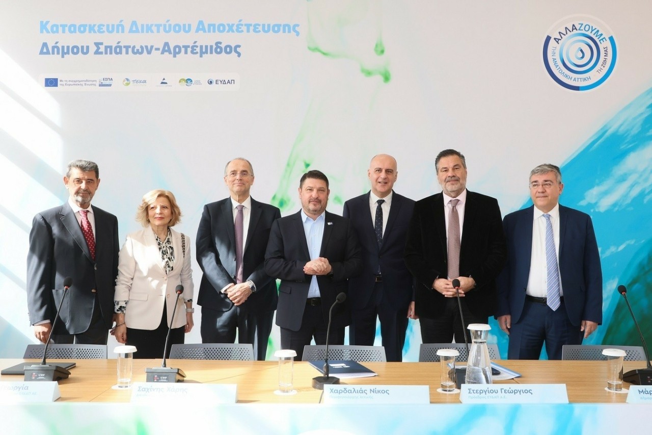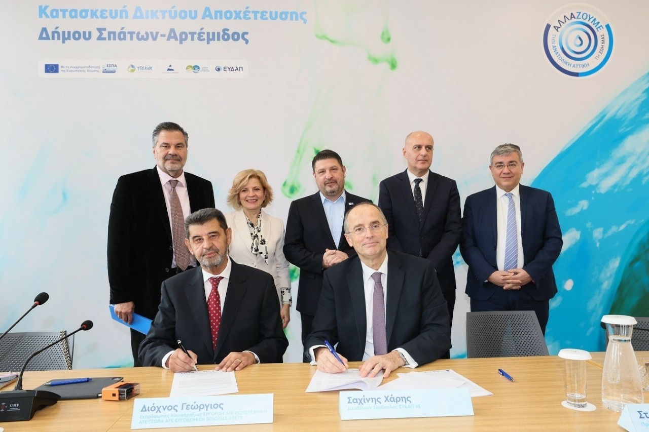 Η σύμβαση κατασκευής του δικτύου αποχέτευσης ακαθάρτων για τον Δήμο Σπάτων-Αρτέμιδος υπεγράφη σήμερα, 4 Φεβρουαρίου 2025 από τον Διευθύνοντα Σύμβουλο της ΕΥΔΑΠ, Χάρη Σαχίνη και τον εκπρόσωπο της αναδόχου κοινοπραξίας ΕΡΓΟΡΟΗ Α.Τ.Ε.-TEDRA-ΧΩΡΟΤΕΧΝΙΚΗ Α.Τ.Ε.- ΕΡΓΟΔΟΜΙΚΗ ΒΟΙΩΤΙΑΣ Α.Β.Ε.Τ.Ε., Γεώργιο Διόχνο.