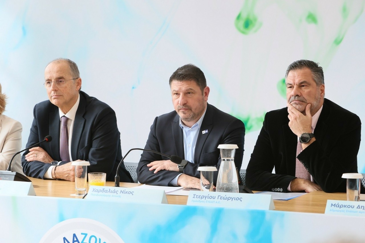 *Στην κεντρική φωτογραφία: Ο Διευθύνων Σύμβουλος της ΕΥΔΑΠ, Χ. Σαχίνης, ο Περιφερειάρχης Αττικής, Ν. Χαρδαλιάς, και ο Πρόεδρος Διοικητικού Συμβουλίου της ΕΥΔΑΠ, Γ. Στεργίου.