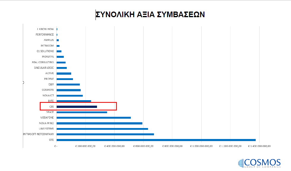 Στη διάρκεια του Α’ εξαμήνου του 2025 ο όμιλος Cosmos Business Systems κατέγραψε στο ενεργητικό του από δημόσιους και ιδιωτικούς διαγωνισμούς, νέες συμβάσεις συνολικής αξίας άνω των 70 εκατ. ευρώ, για τα έργα: