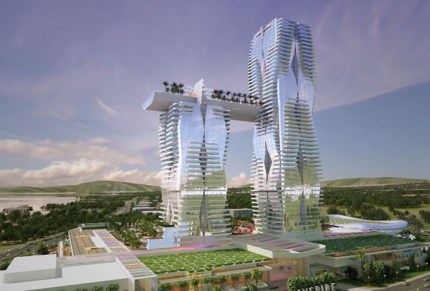 Με έμπνευση από τις Καρυάτιδες και εμφανείς τις αναφορές στο αρχιτεκτονικό παρελθόν της Αθήνας, η Mohegan Gaming and Entertainment (MGE) παρουσίασε τη μακέτα του τουριστικού συγκροτήματος του καζίνο. Το όνομά του είναι INSPIRE Athens και είναι δημιουργία του διεθνούς αρχιτεκτονικού γραφείου Steelman Partners.