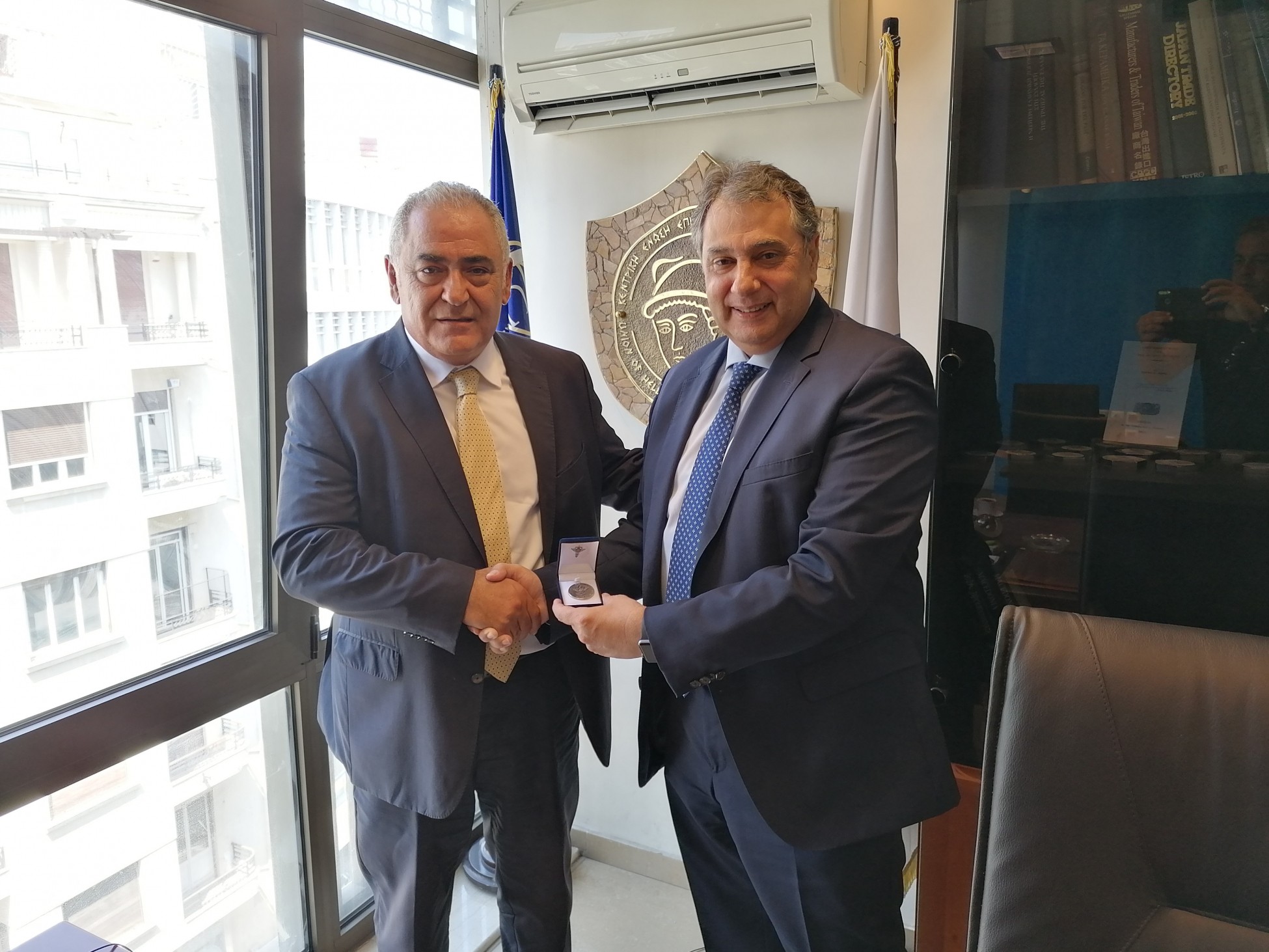 Συνάντηση του Προέδρου του Εμπορικού και Βιομηχανικού Επιμελητηρίου Πειραιώς και του Περιφερειακού Επιμελητηριακού Συμβουλίου Αττικής, κ. Βασίλη Κορκίδη, με τον νεοεκλεγέντα πρόεδρο της Κεντρικής Ένωσης Επιμελητηρίων, κ. Γιάννη Χατζηθεοδοσίου, πραγματοποιήθηκε στις 20.08.2021, κατά την οποία, επιβεβαιώθηκε, πρωταρχικά, η πρόθεση του Ε.Β.Ε.Π. να συνδράμει στις συνεχείς προσπάθειες της Επιμελητηριακής Κοινότητας και όχι μόνο, για τη συνολική βελτίωση του επιχειρηματικού κλίματος σε μία περίοδο επανεκκίνησης της πραγματικής οικονομίας.