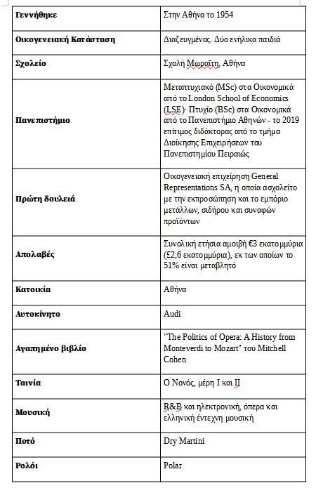 Ο διευθύνων σύμβουλος και πρόεδρος είναι ντυμένος με business-casual ρούχα, φορώντας ένα άψογα σιδερωμένο ανοιχτό γαλάζιο πουκάμισο με τα αρχικά του ραμμένα στο αριστερό μέρος. Στην καυτή Αθηναϊκή καλοκαιρινή ζέστη, τα μανίκια του είναι σηκωμένα. Ως ο μεγαλύτερος μέτοχος της εταιρείας αξίας £4,7 δισ., το προσωπικό του μερίδιο αξίζει περίπου £850 εκατομμύρια.