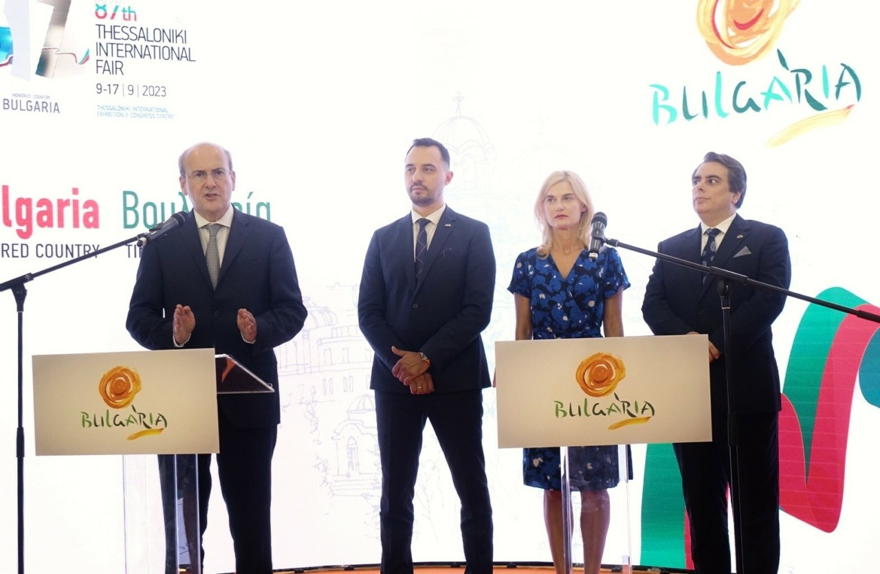Τις μεγάλες προοπτικές περαιτέρω σύσφιξης των δεσμών Ελλάδας-Βουλγαρίας υπογράμμισαν κατά τα σημερινά εγκαίνια του περιπτέρου της Τιμώμενης Χώρας οι Βούλγαροι υπουργοί Οικονομίας και Βιομηχανίας, κ. Bogdan Bogdanov και Οικονομικών, Assen Vassilev, μαζί με τον Έλληνα υπουργό Οικονομικών, κ. Κωστή Χατζηδάκη.