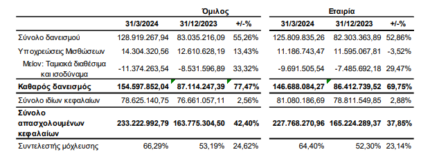 Κατά τη διάρκεια των τριών πρώτων μηνών του 2024 παρατηρήθηκε μεταβολή στην κεφαλαιακή διάρθρωση