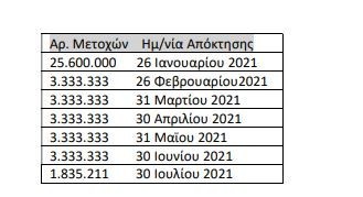 Με τμηματική αγορά μετοχών που θα ξεκινήσει μία μέρα πριν την γενική συνέλευση στις 26 Ιανουαρίου και θα ολοκληρωθεί στις 30 Ιουλίου του 2021, θα μεταβιβαστεί το 20,58% των μετοχών της PEMANOARO LIMITED που ελέγχεται από τους αδερφούς Καλλιτσάντση προς την εταιρεία «AKRON TRADE AND TRANPORT S.A» συμφερόντων Δημήτρη Μπάκου και Ιωάννη Καϋμενάκη με έδρα τα Ηνωμένα Αραβικά Εμιράτα.
