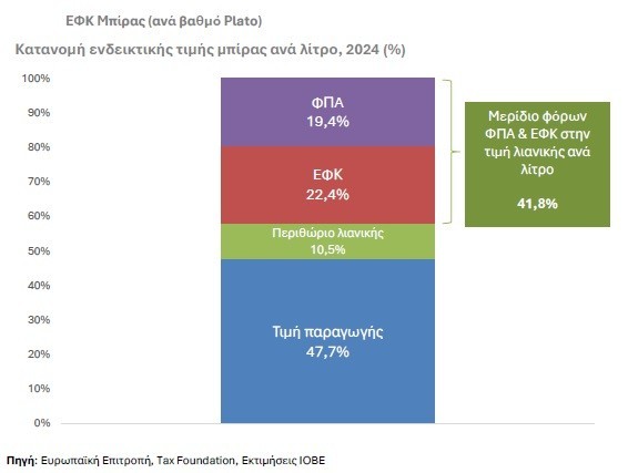 Καθοριστικό ρόλο διαδραματίζει και η φορολογία. Ο ειδικός φόρος κατανάλωσης στη μπύρα αυξήθηκε διαδοχικά μετά το 2010 και διπλασιάστηκε το 2016, με αποτέλεσμα σήμερα να βρίσκεται σε επίπεδα περίπου πέντε φορές υψηλότερα σε σχέση με την προ κρίσης περίοδο. Συνολικά, εκτιμάται ότι περίπου το 42% της τελικής τιμής της μπύρας αντιστοιχεί σε φόρους, γεγονός που περιορίζει τόσο τη ζήτηση όσο και τα περιθώρια των επιχειρήσεων.
